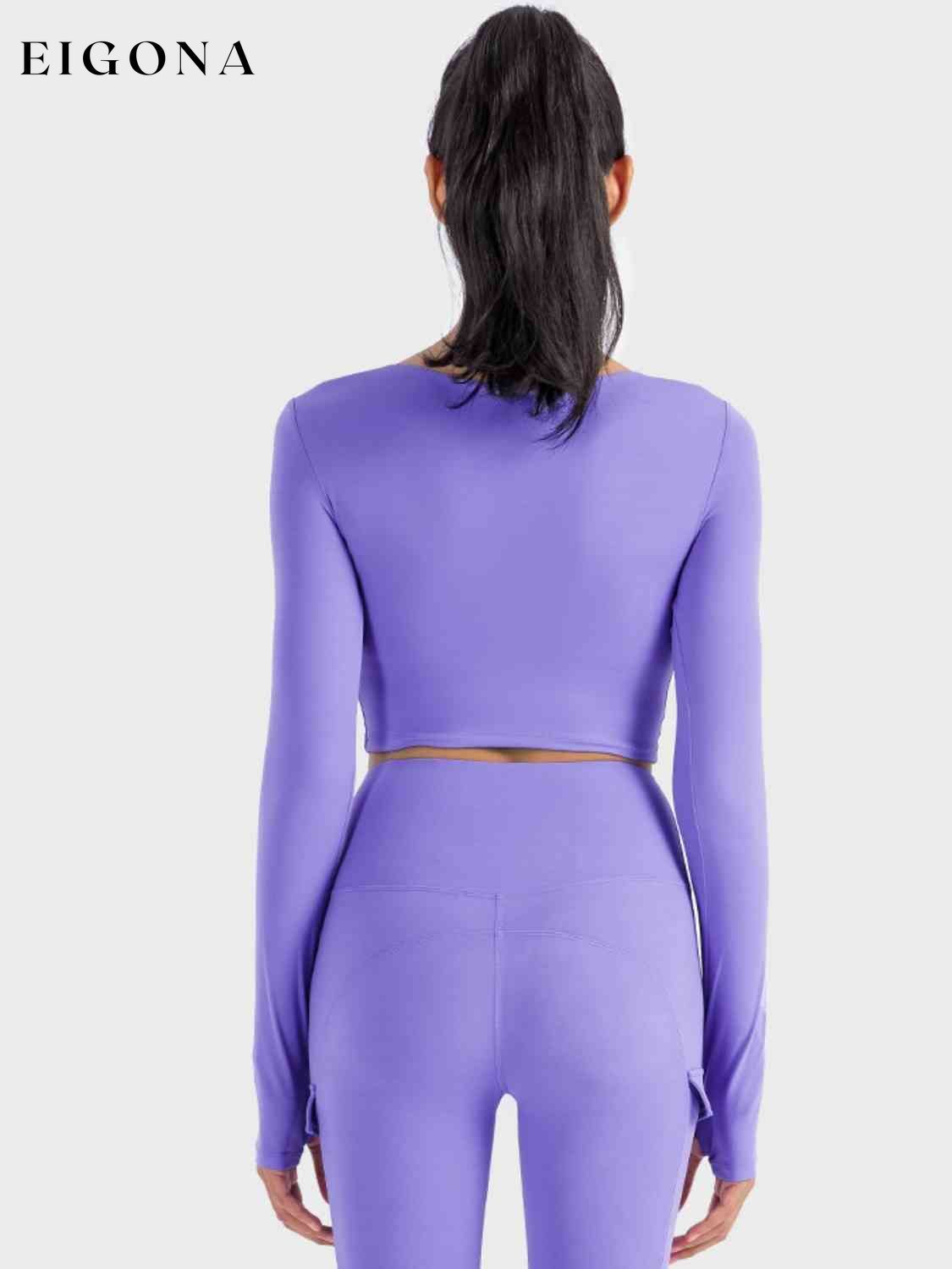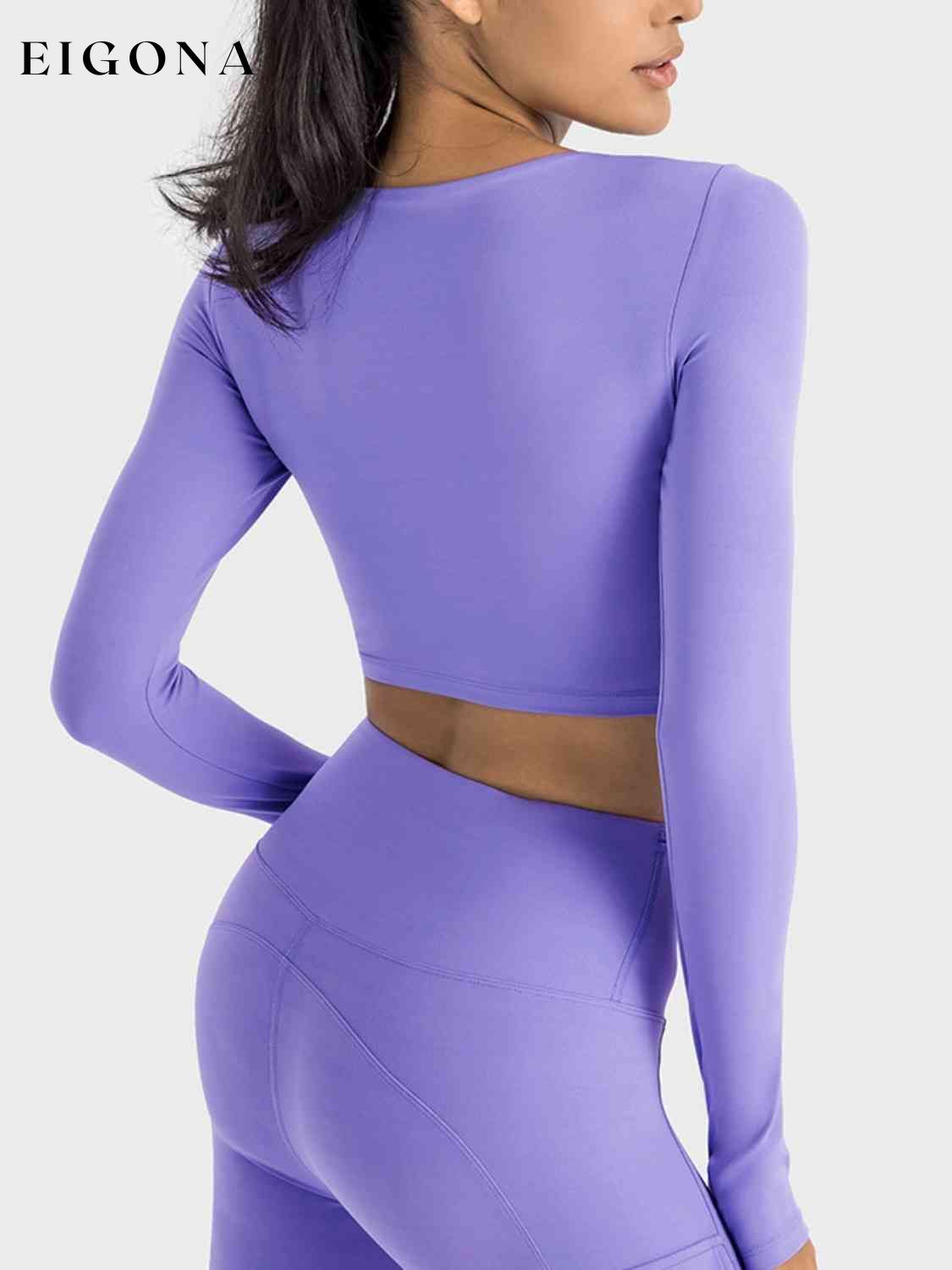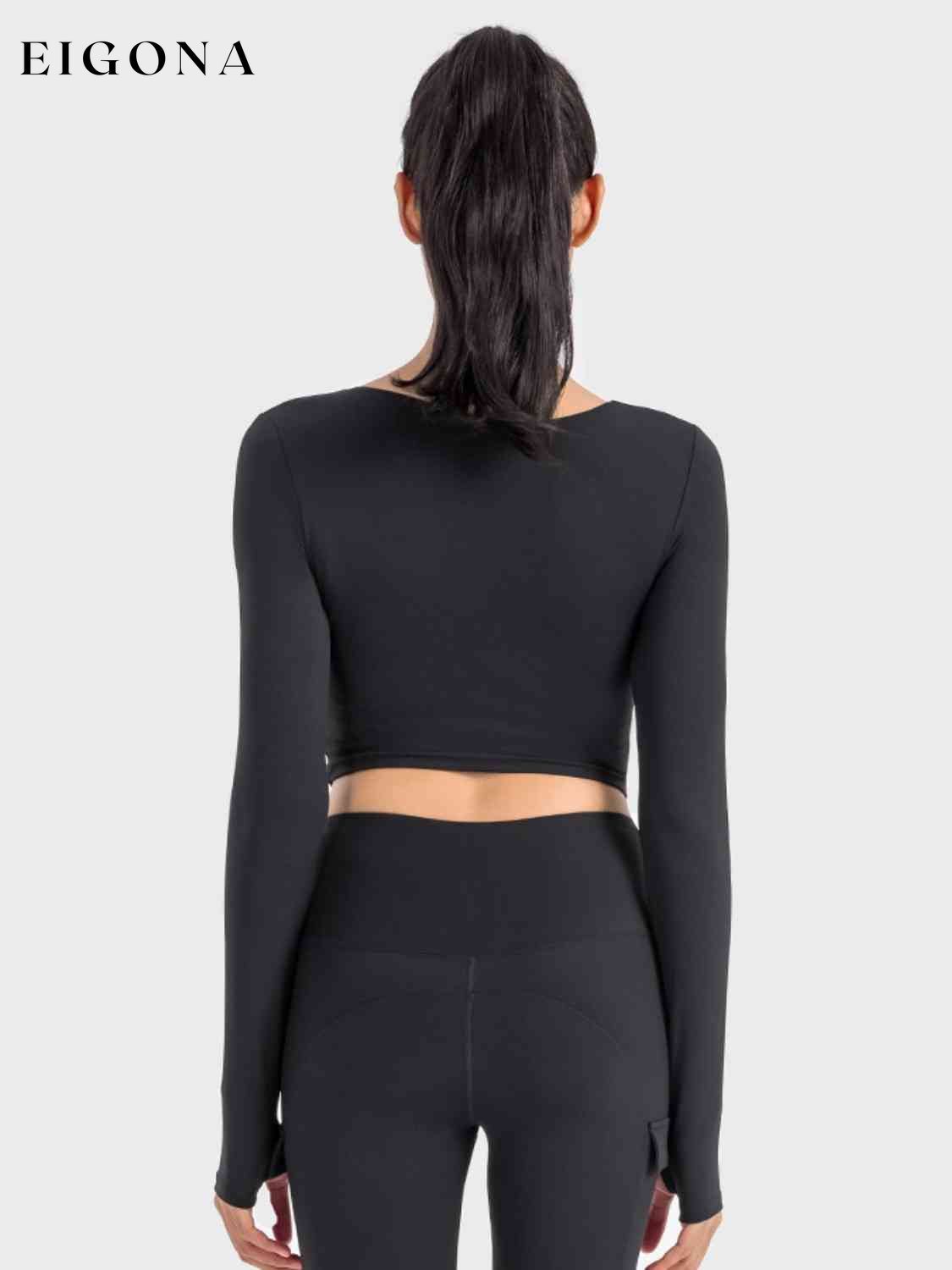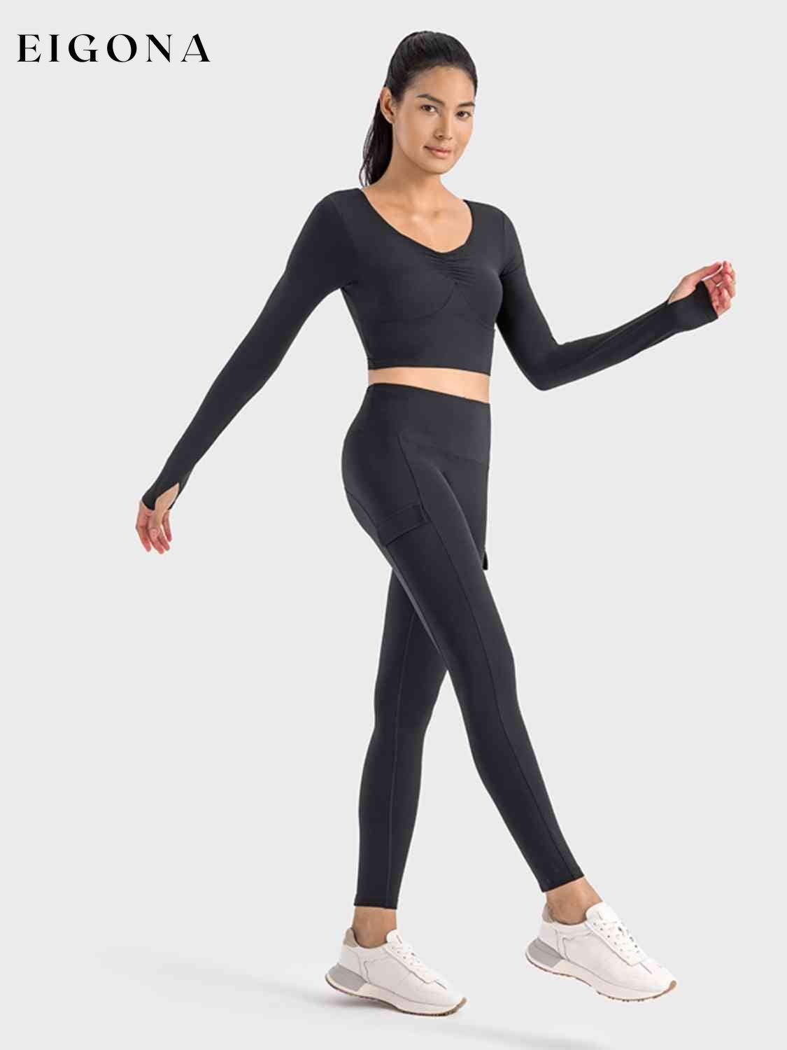 Top sportivo a maniche lunghe corto con arricciature