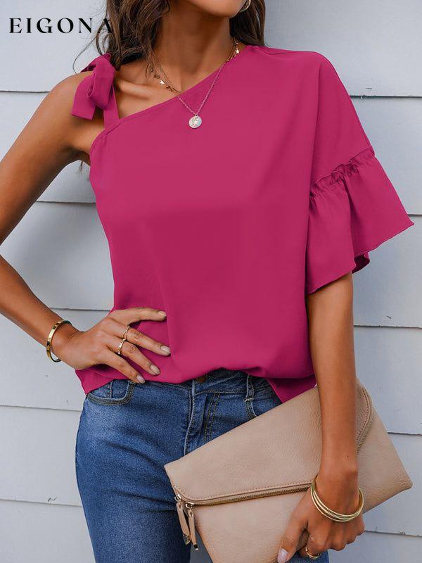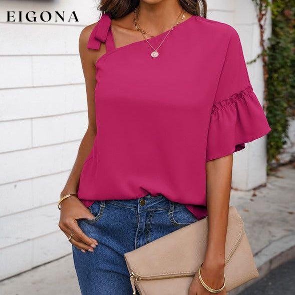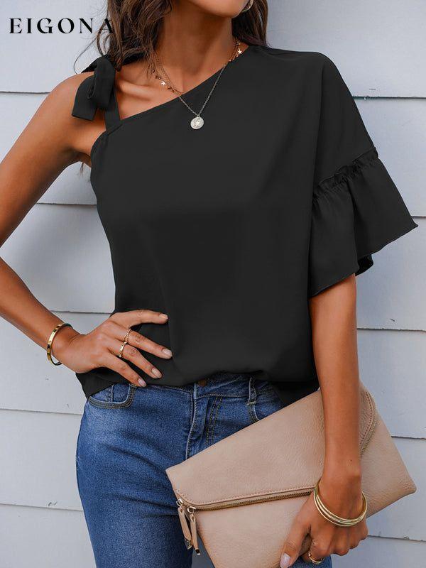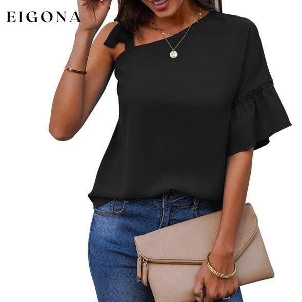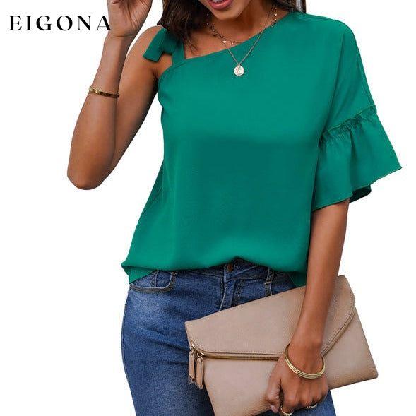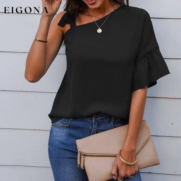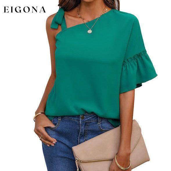 Top in chiffon con maniche a volant con colletto diagonale alla moda da donna