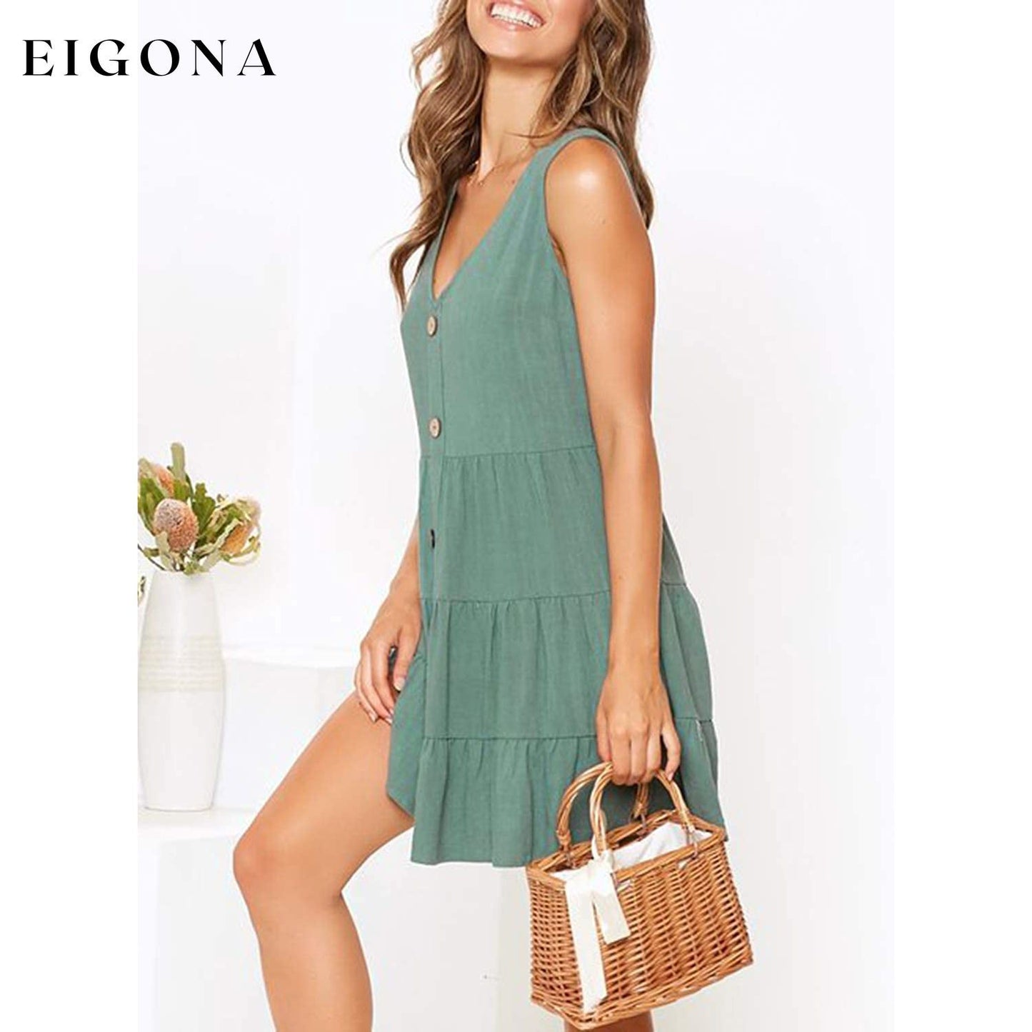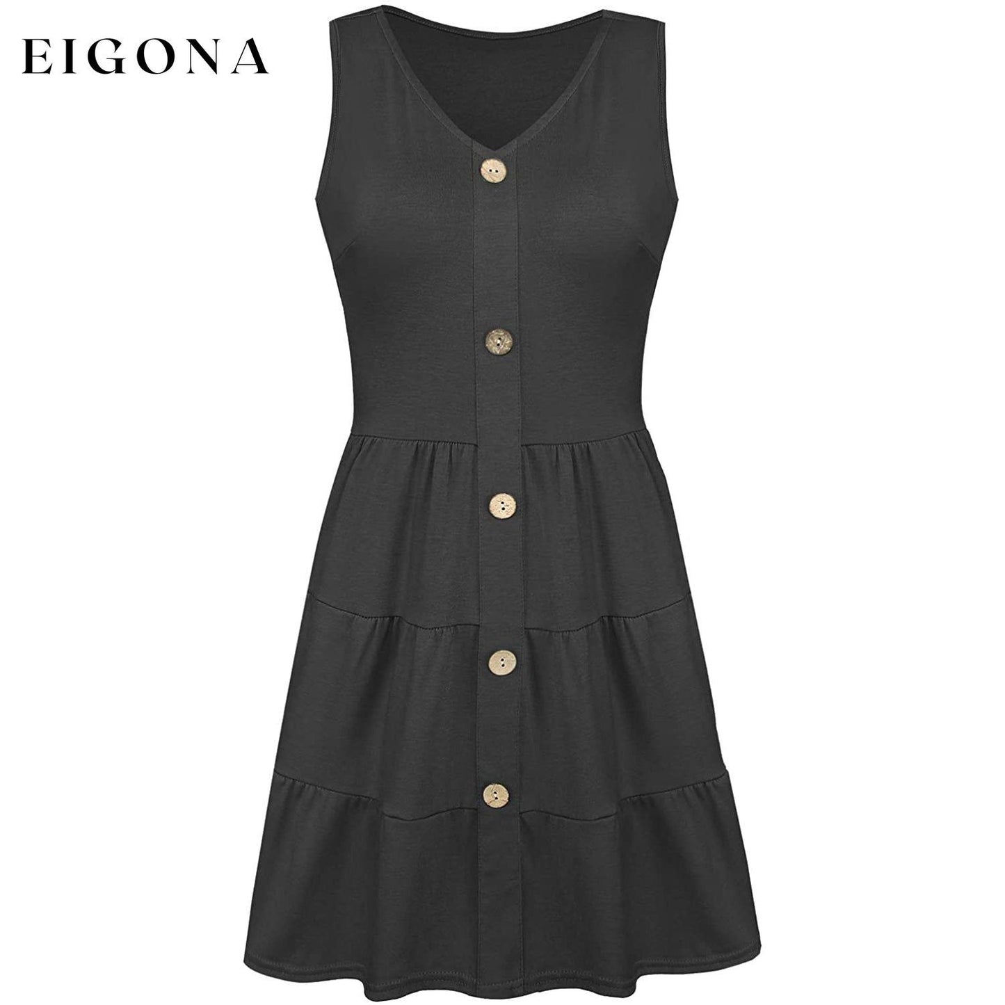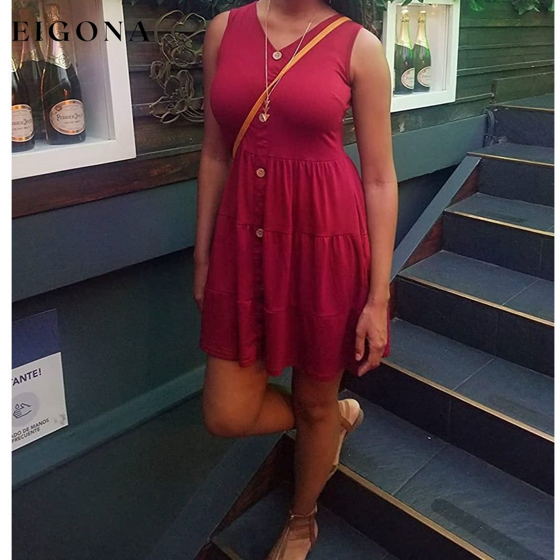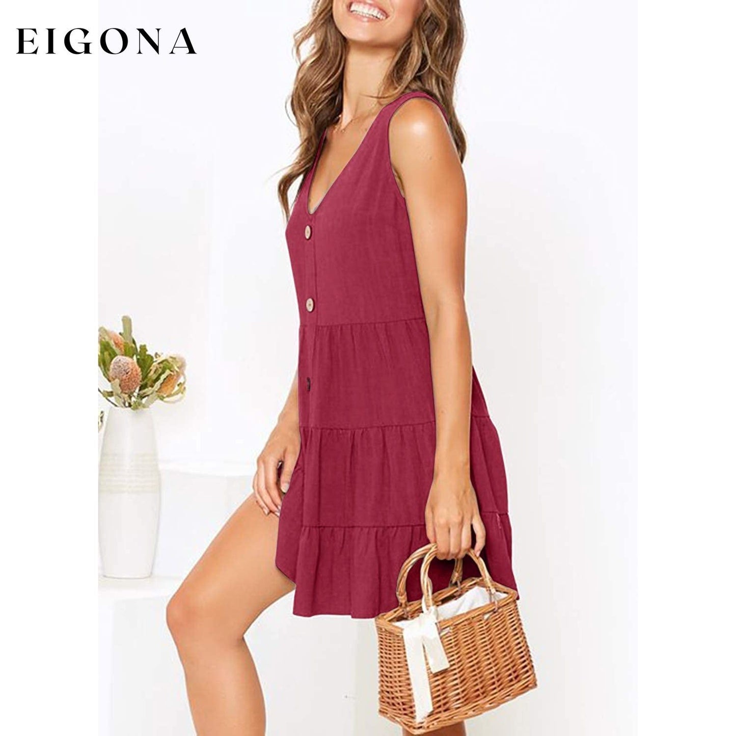 • Abito t-shirt casual lungo sopra il ginocchio con due tasche laterali, scollo a V sexy, vestibilità slim, bottoni decorati sul davanti, tinta unita, abito a strati, abito a canotta/abito con maniche a volant.