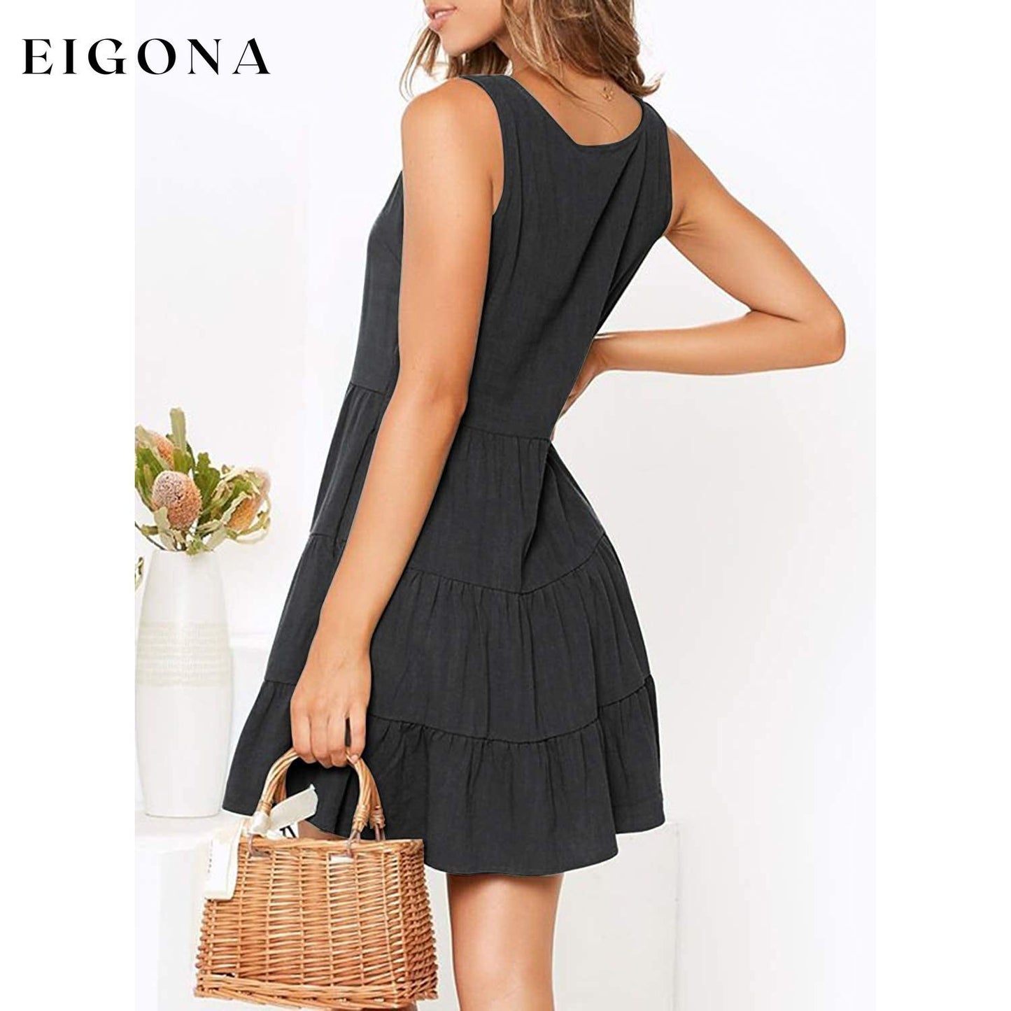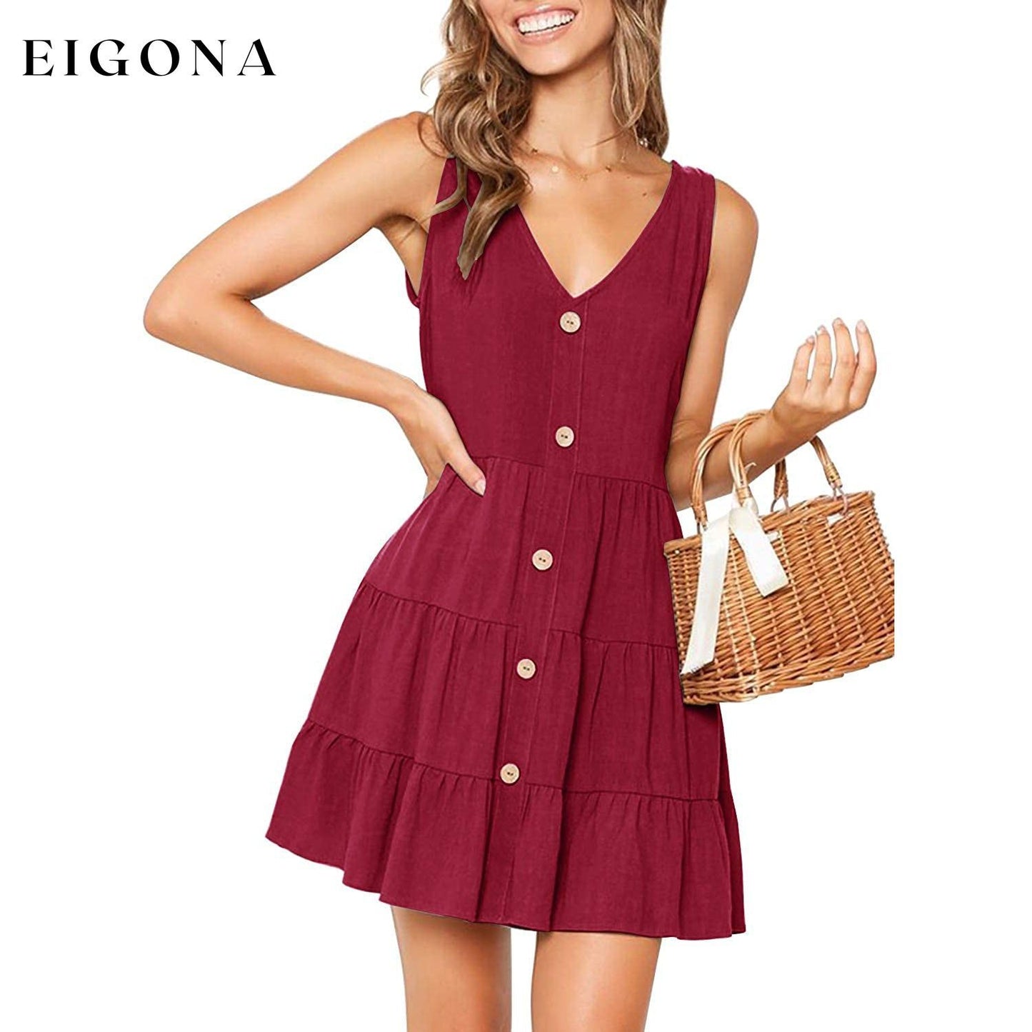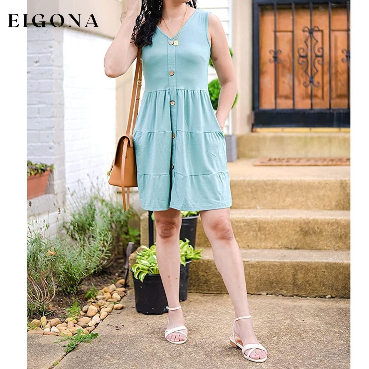 • Abito t-shirt casual lungo sopra il ginocchio con due tasche laterali, scollo a V sexy, vestibilità slim, bottoni decorati sul davanti, tinta unita, abito a strati, abito a canotta/abito con maniche a volant.