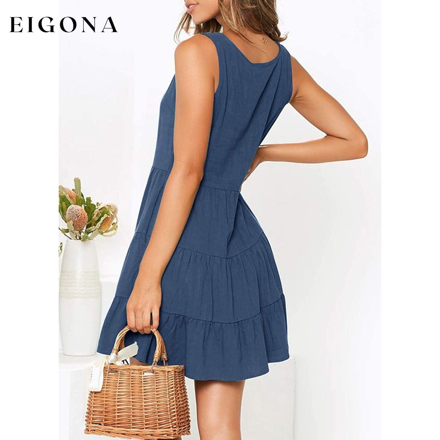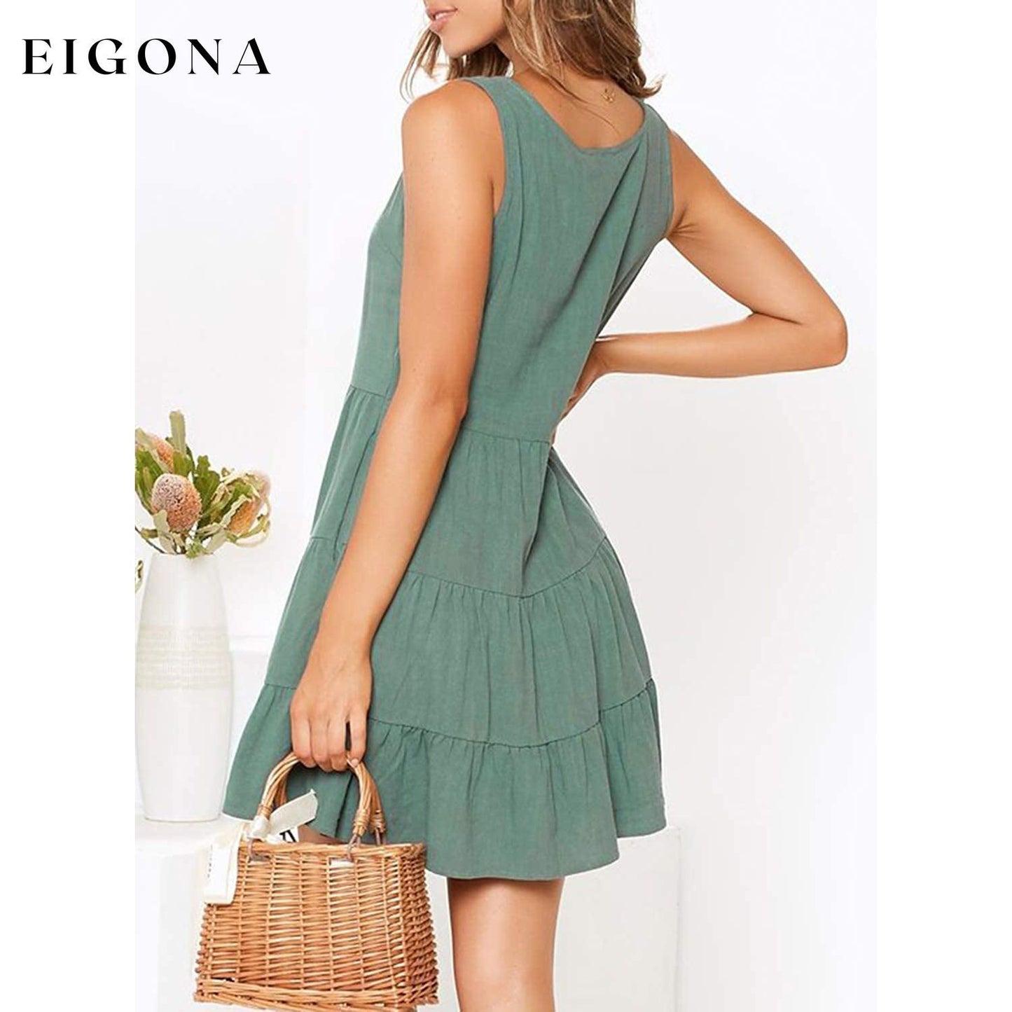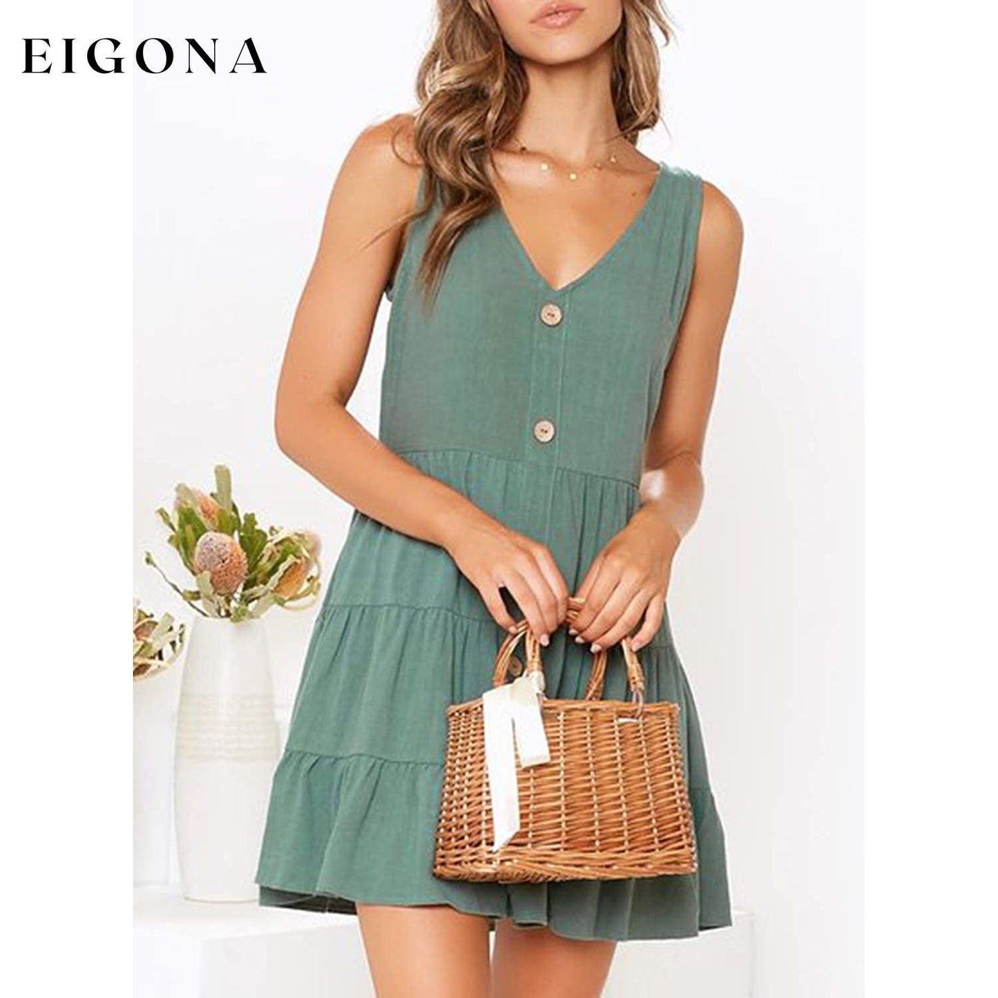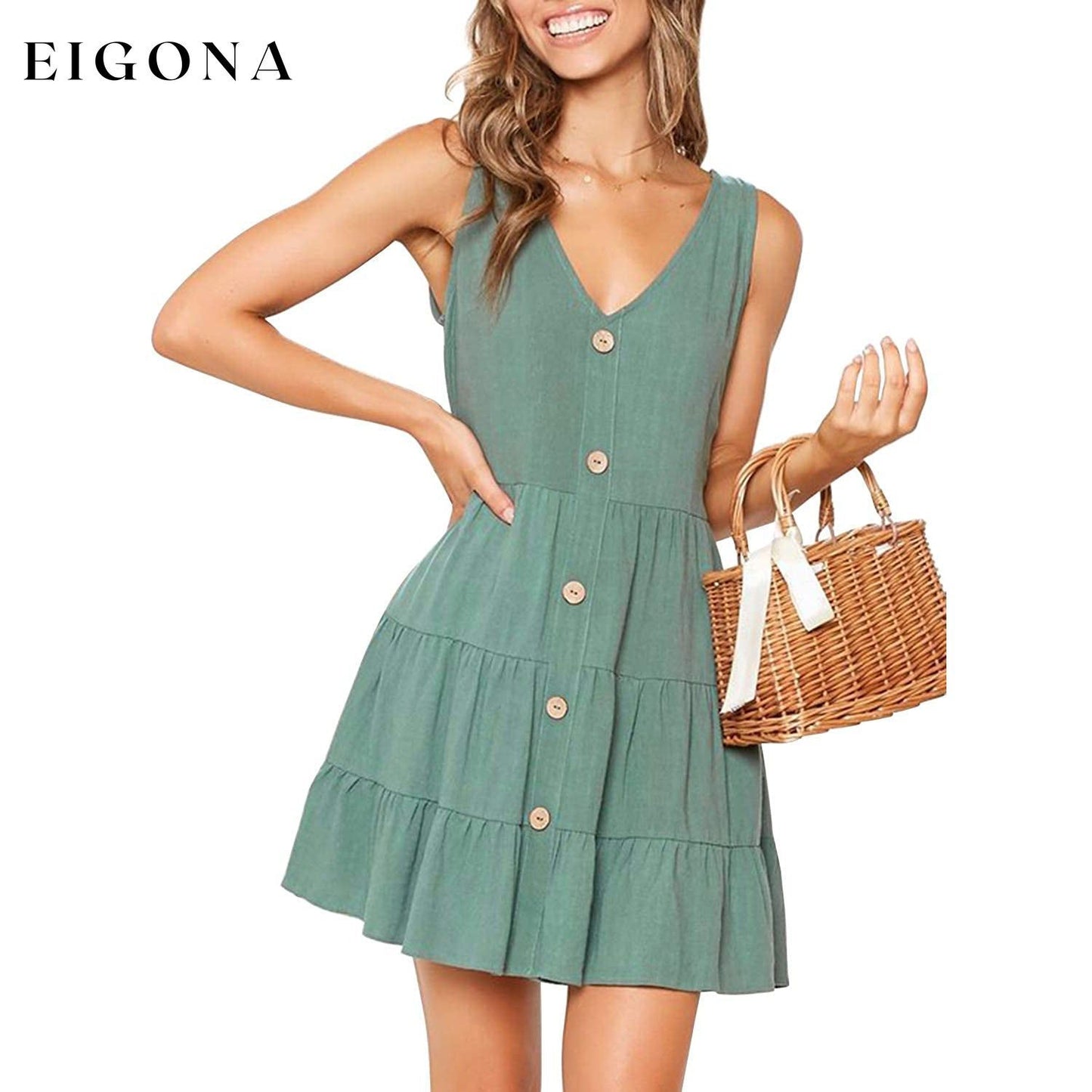 • Abito t-shirt casual lungo sopra il ginocchio con due tasche laterali, scollo a V sexy, vestibilità slim, bottoni decorati sul davanti, tinta unita, abito a strati, abito a canotta/abito con maniche a volant.