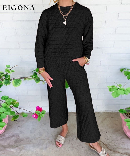 Completo pullover trapuntato e pantaloni neri in tinta unita
