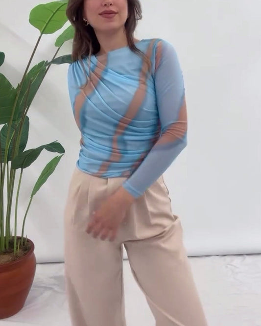 Top casual a righe verticali con bottoni in legno e scollo tondo