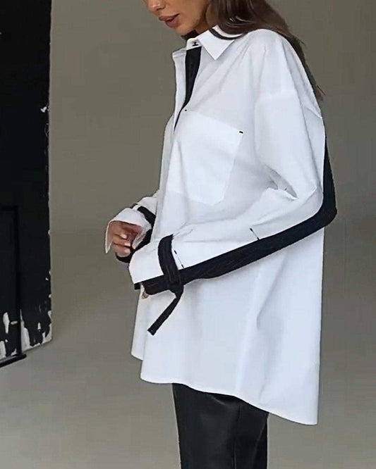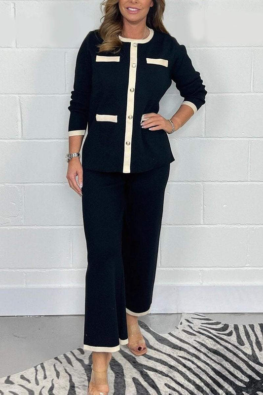 Completo due pezzi ampio con risvolto largo e colori a contrasto da donna