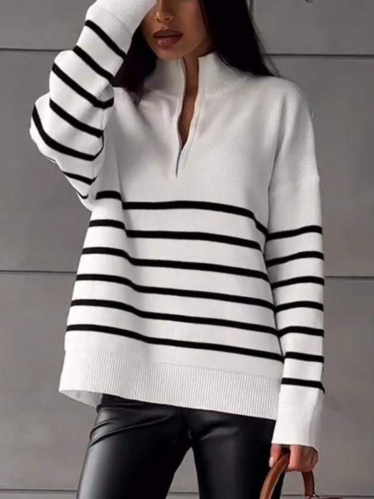 Top da donna in pullover larghi lavorati a maglia streetwear patchwork a righe