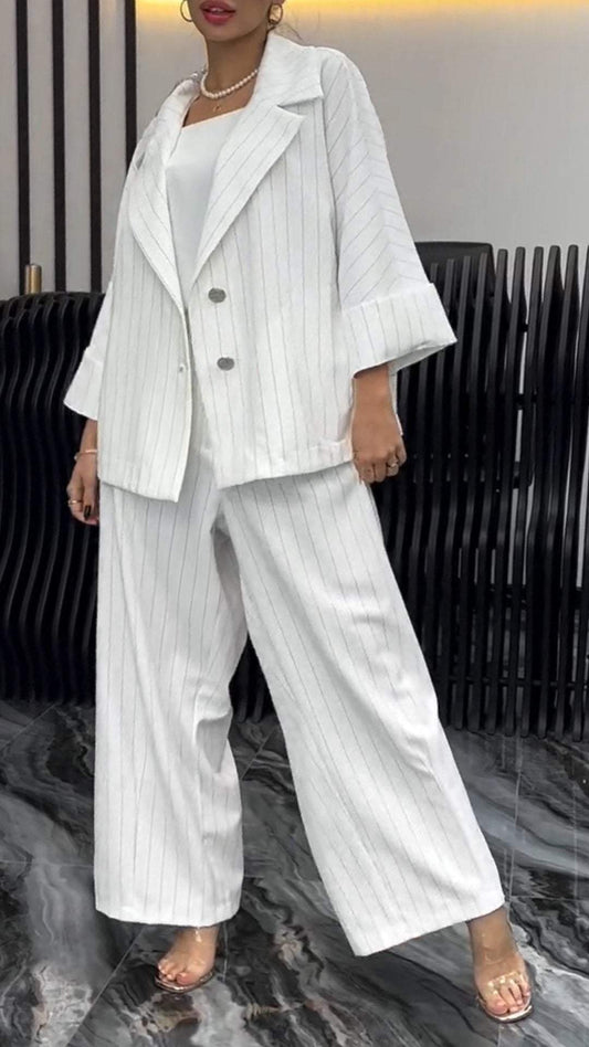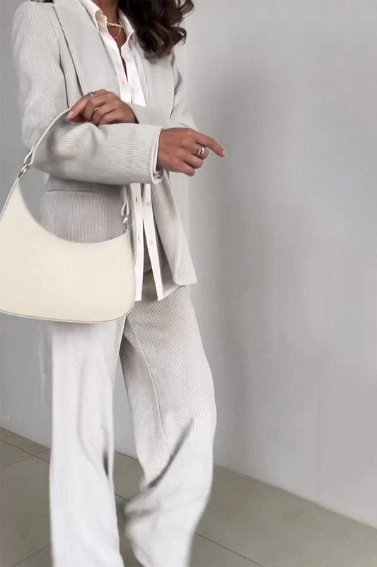 Completo da donna a due pezzi con blazer a maniche lunghe a righe