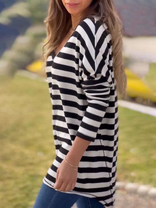 Felpa con cappuccio pullover con coulisse a maniche lunghe stampata a righe da donna