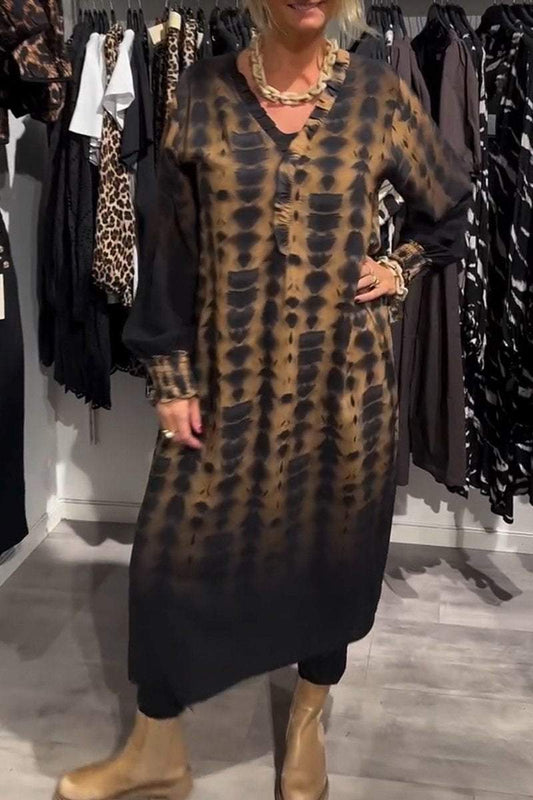Abito casual ampio con scollo a V e stampa leopardata da donna, primavera/autunno