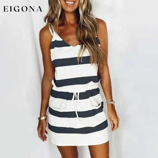 Abito camicia a maniche lunghe con colletto polo in cotone e lino a righe da donna
