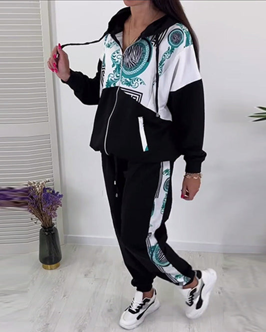 Completo casual a due pezzi con cerniera colorblock