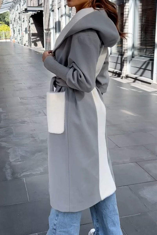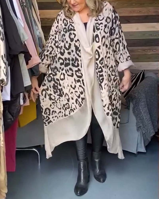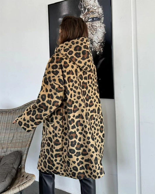 Cappotto casual con cappuccio e tasca con stampa leopardata