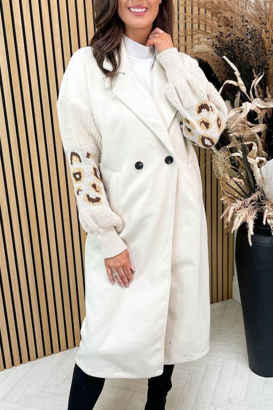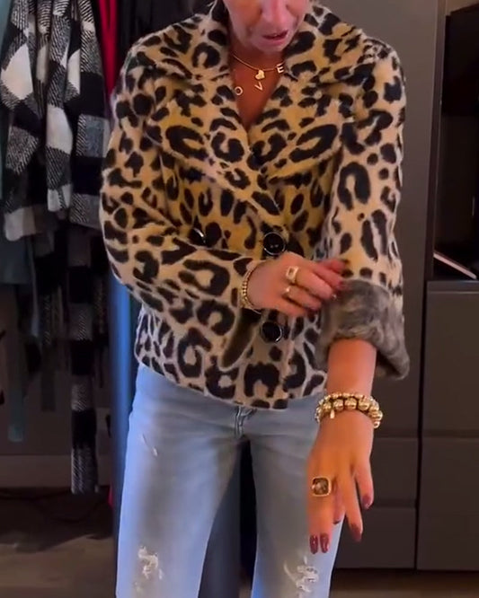 Cappotto alla moda con bottoni e revers a stampa leopardata