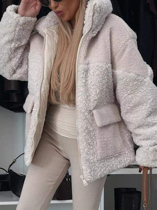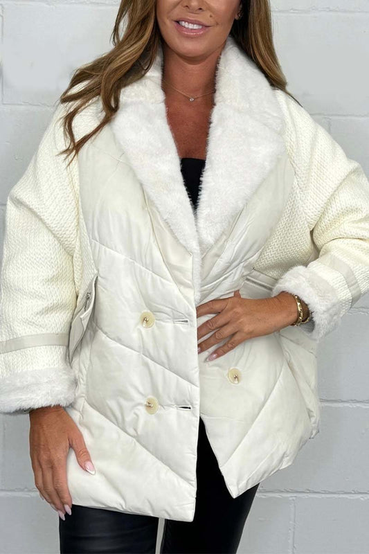 Giacca da donna trapuntata/in maglia con collo in pelliccia sintetica e tasca con cerniera