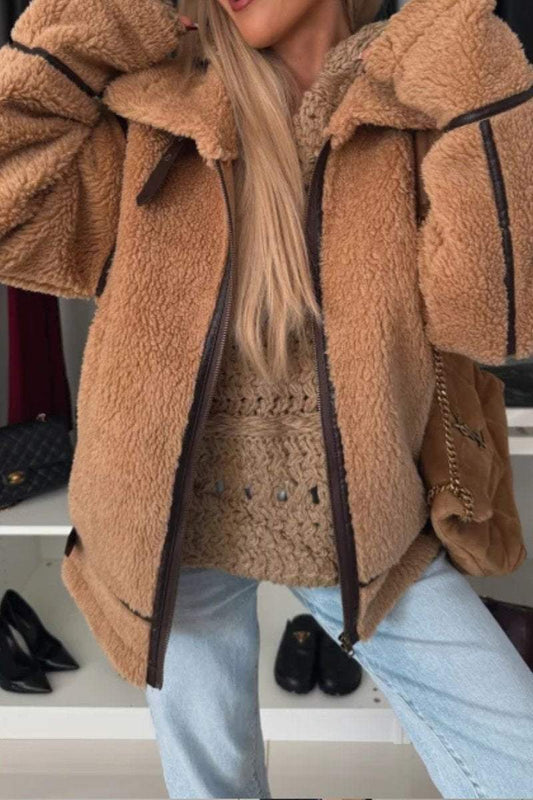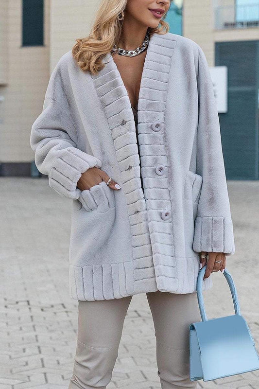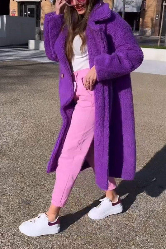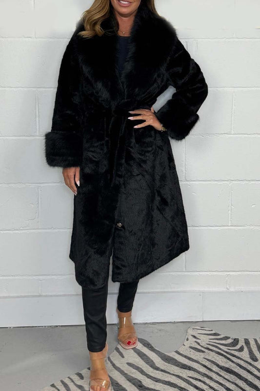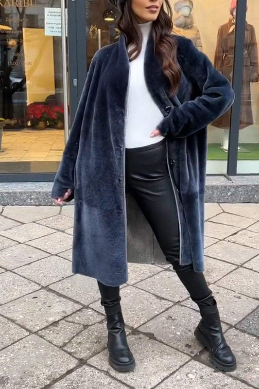 Cappotto di pelliccia a maniche lunghe con risvolto da donna