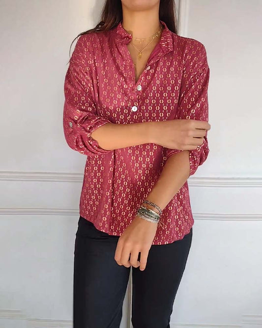 Blusa con bottoni e maniche lunghe con scollo a V e stampa retrò