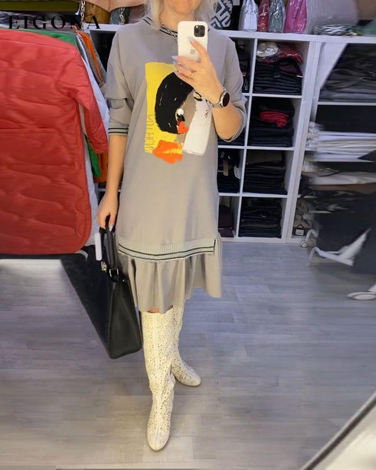 Abito lungo stampato patchwork a maniche lunghe con colletto rialzato