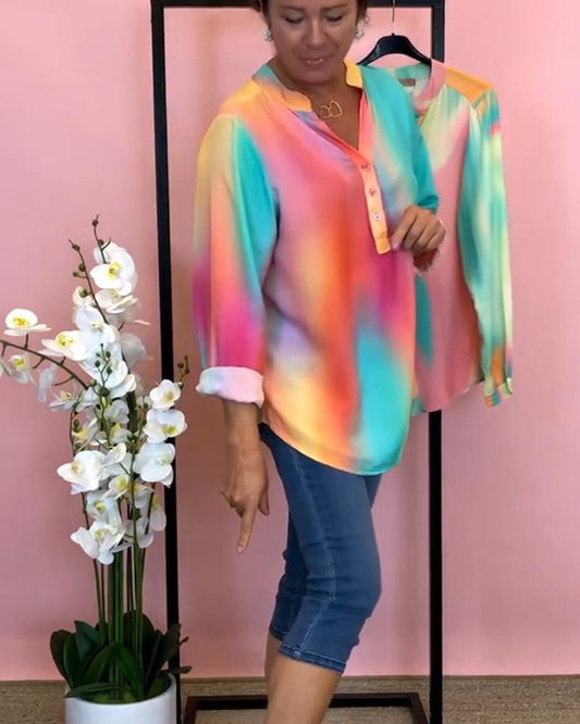 Blusa sfumata a maniche lunghe con bottoni e scollo a V