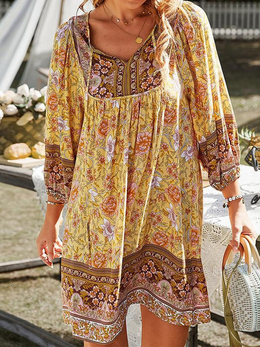Abito casual con scollo a V e stampa retrò