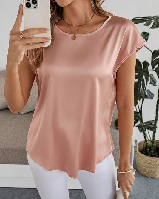 Camicetta a maniche corte con scollo a V e stampa a doppio strato
