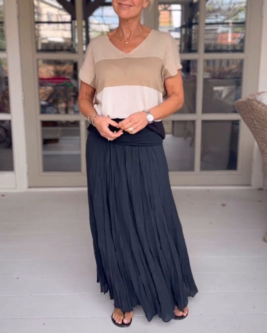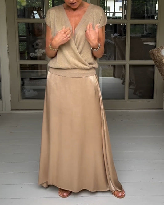 Blusa casual a maniche corte con scollo a V in tinta unita
