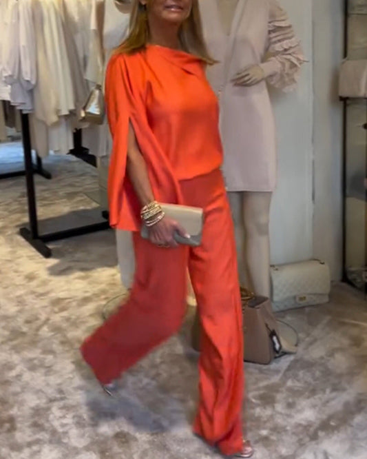 Set con maniche a fessura alla moda in tinta unita con spalle scoperte