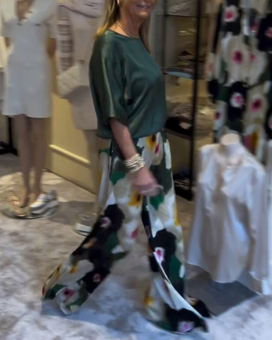 Abito a maniche corte con tasca con stampa a foglie alla moda