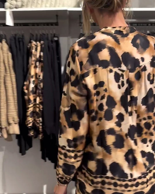 Camicia a maniche lunghe con stampa leopardata alla moda