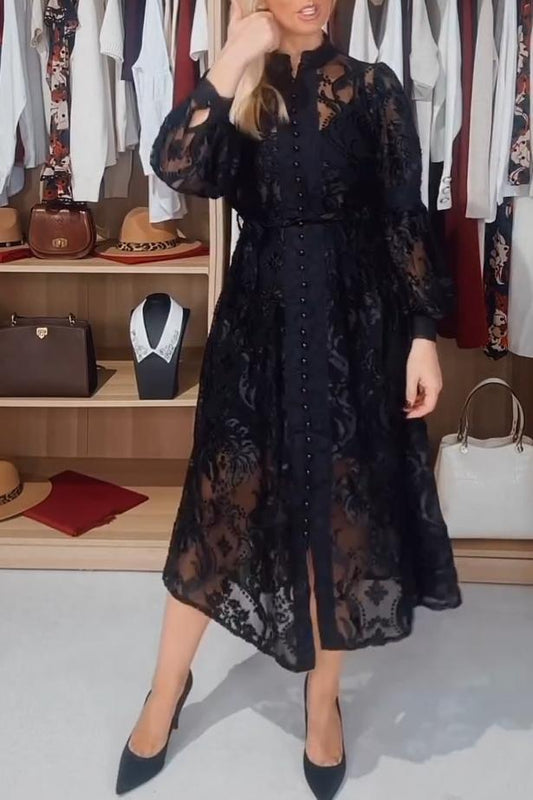 Abito casual elegante in pizzo con bottoni aperti da donna