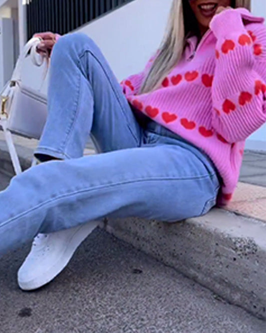 Maglione pullover a maniche lunghe con risvolto in tinta unita
