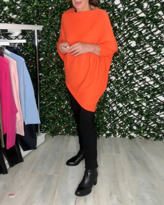 Pullover irregolare con maniche a pipistrello in tinta unita alla moda