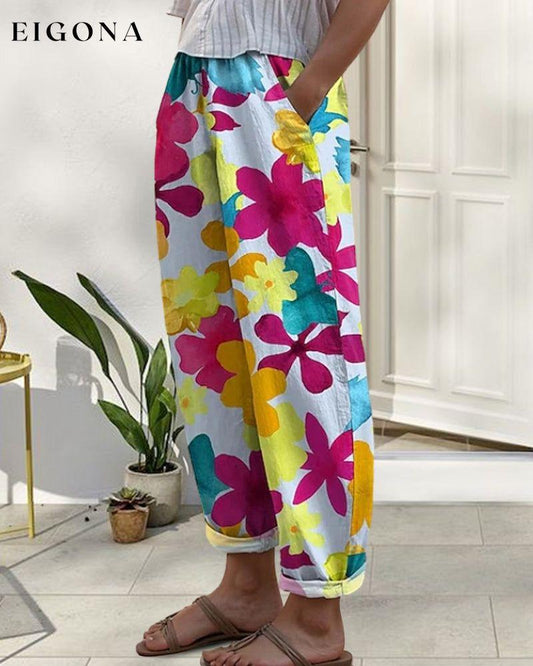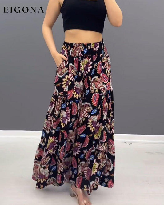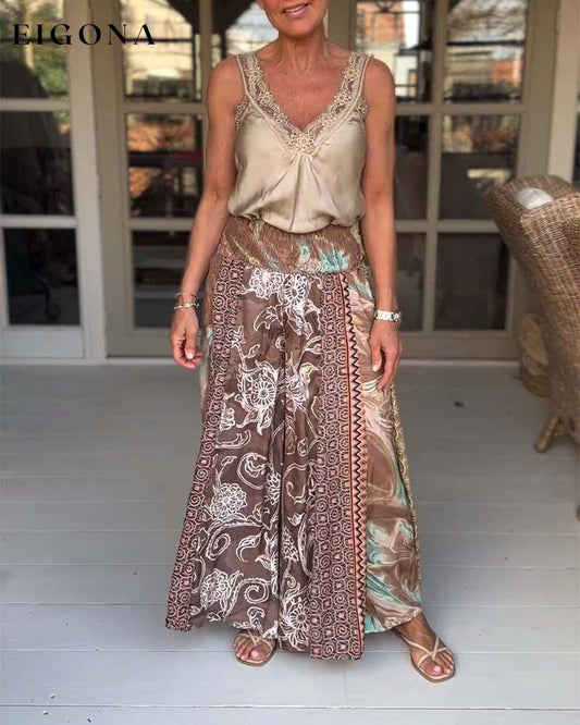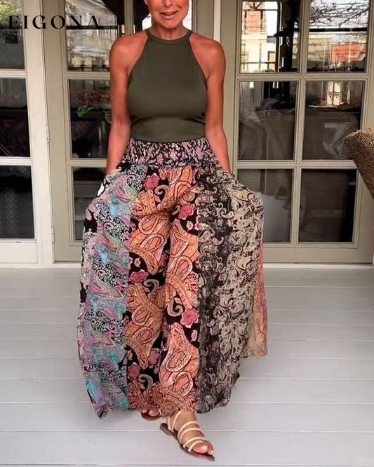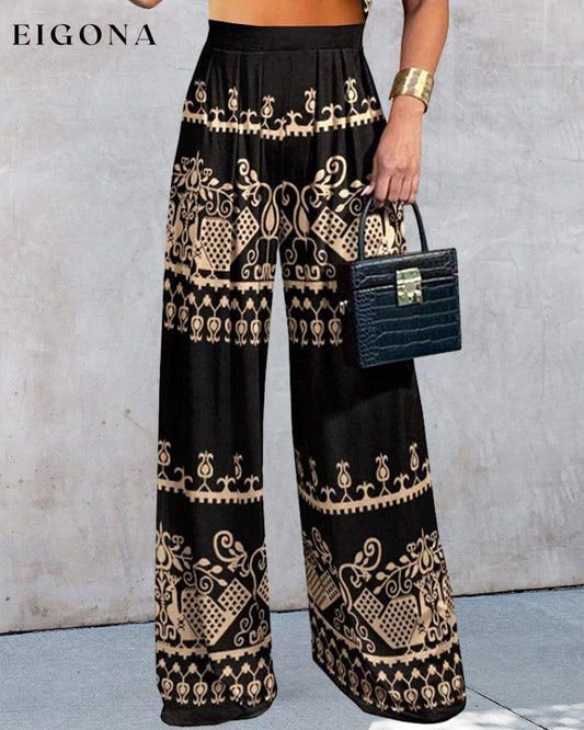 Pantaloni a gamba dritta a vita alta in stile etnico