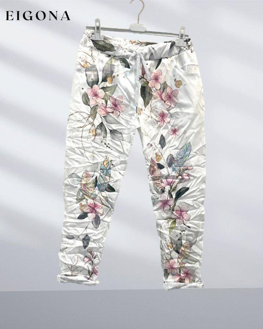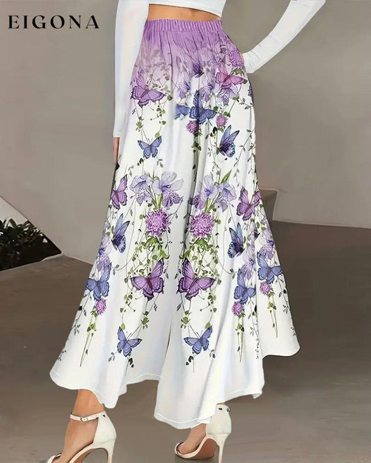 Pantaloni a gamba larga con tasche e stampa a farfalla
