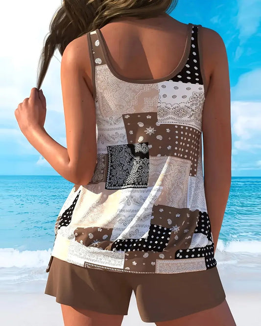 Tankini sexy in due pezzi con scollo all'americana e stile festivo