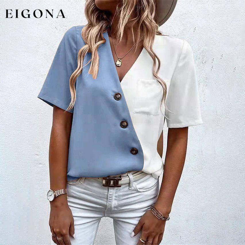 Camicia da donna a maniche corte con scollo a V e bottoni tascabili