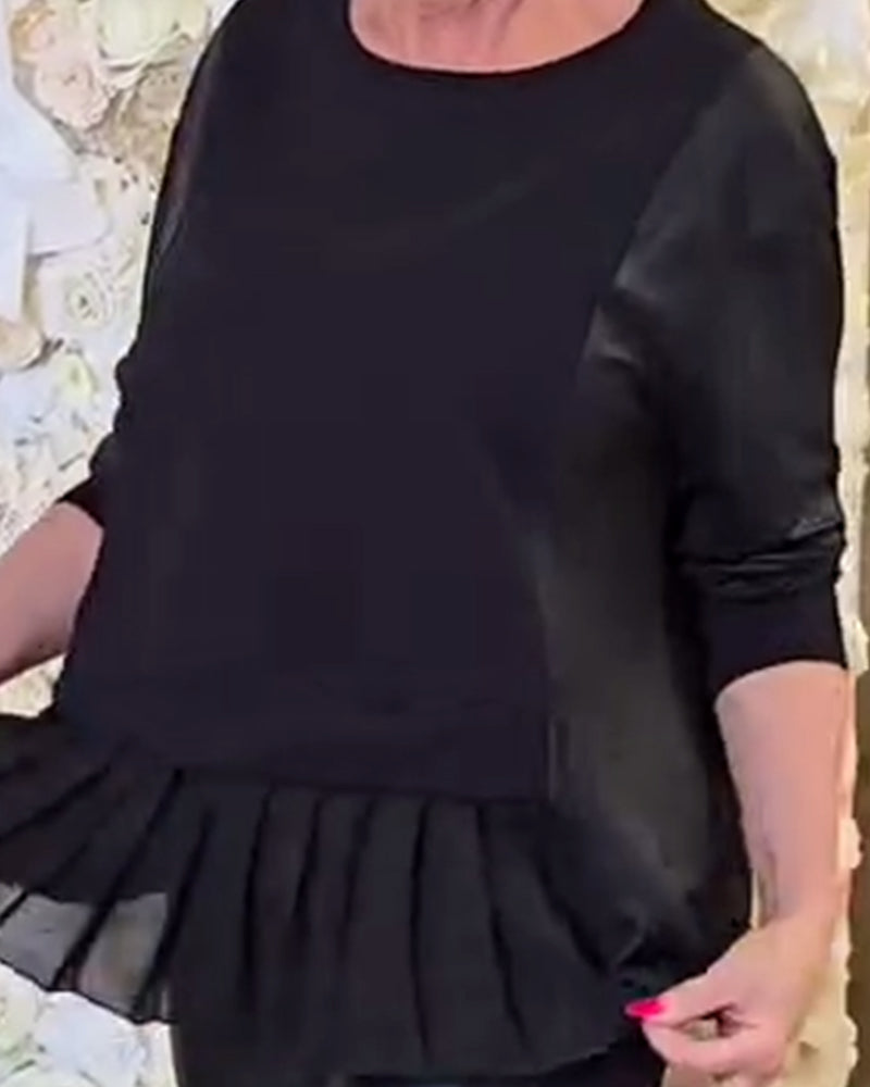 Solid Color Patchwork Long-Sleeved Sweatshirt