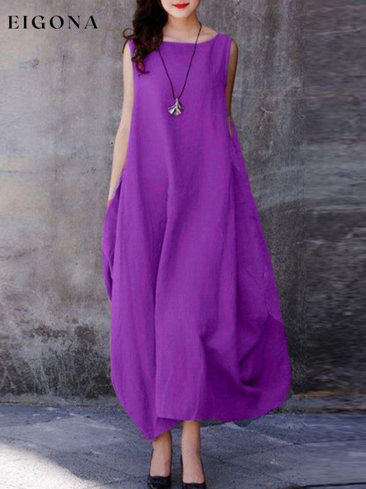 Kvinners vevd uformelt bomullslin, behagelig rund hals ermeløs kjole