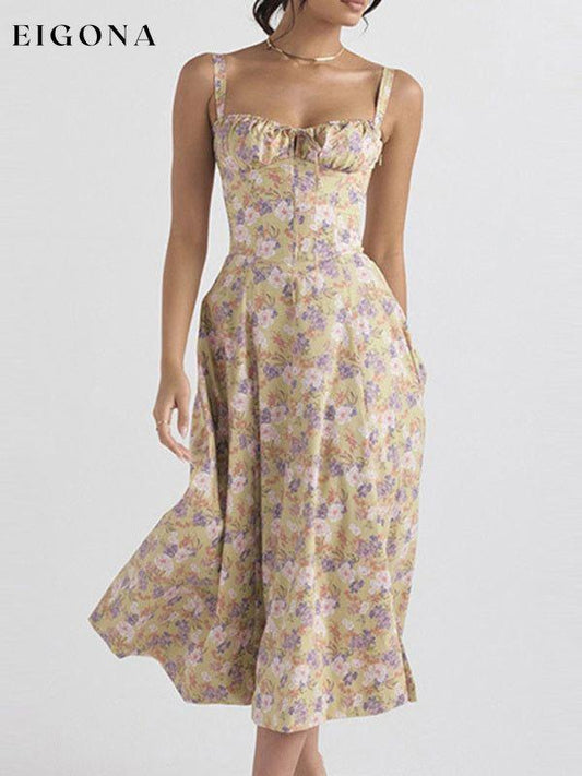 Damekjole, blomstret brystknyttet trykt midje knytekort kjole