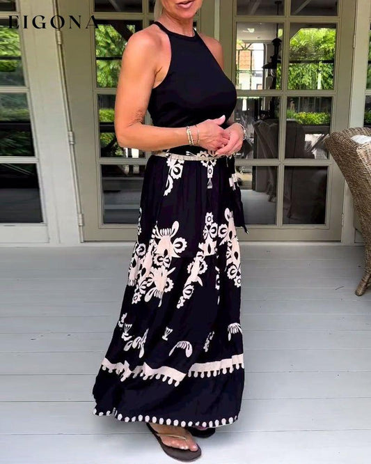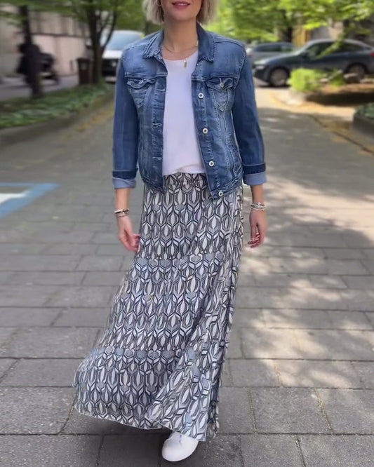 Vintage trykt løst langt skjørt