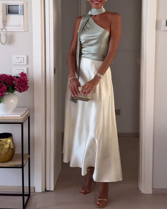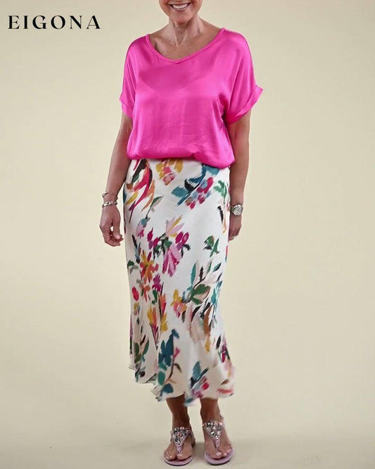 Ensfarget silkeaktig fritidsskjørt