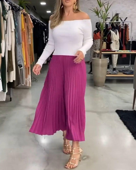 Ensfarget plissert elegant skjørt