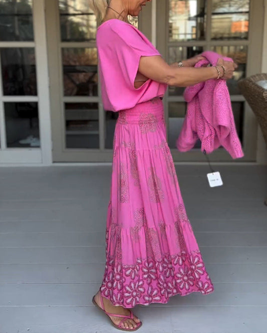Floral Tie Skulder Topp og Tiered Maxi Skjørt Sett