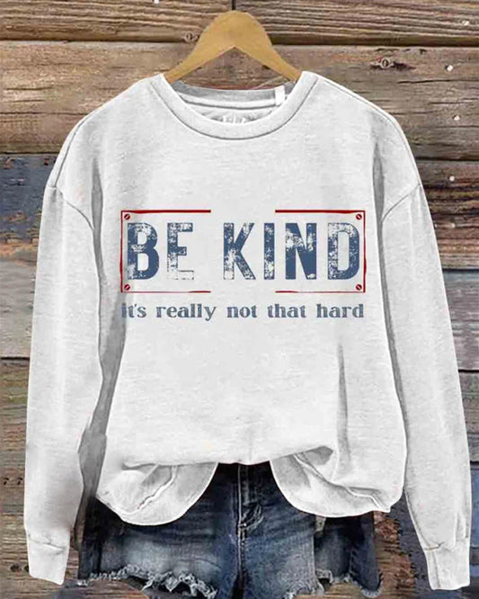 Felpa casual con stampa "Be Kind It's Really Not That Hard"