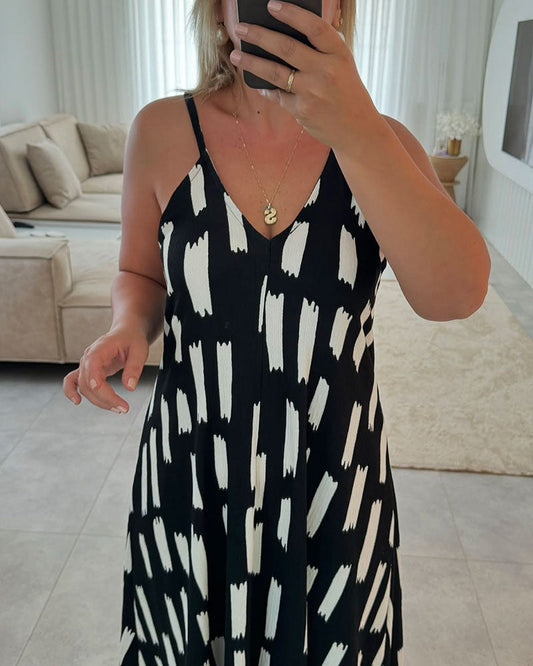 Abito con stampe geometriche e spalline sottili