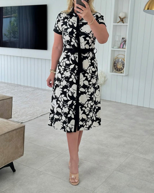 Abito stampato a maniche corte in stile camicia