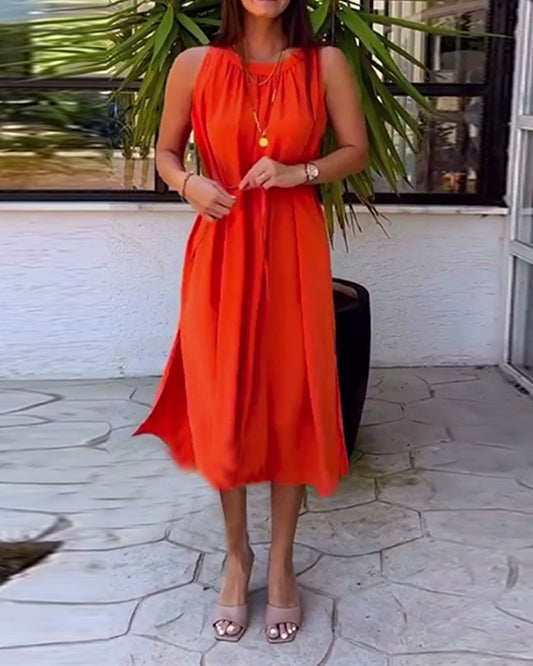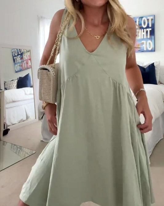 Abito casual senza maniche con scollo a V e tinta unita