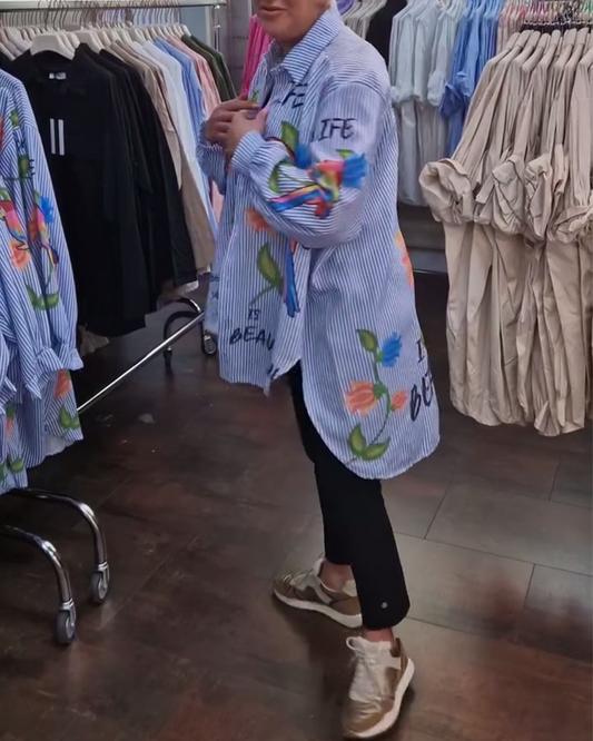 Uformell stripet langermet skjorte med papegøyetrykk