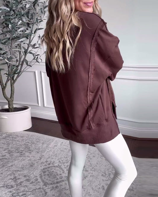 Plissert ensfarget langermet casual topp