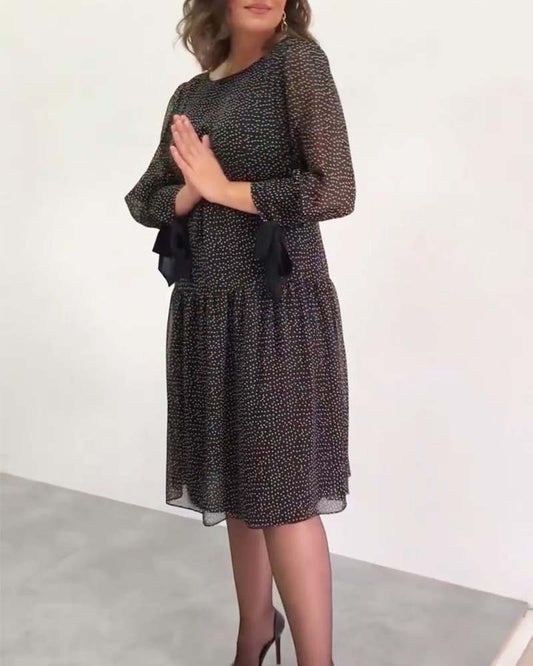 Elegant kjole med rund hals og lange ermer med prikker