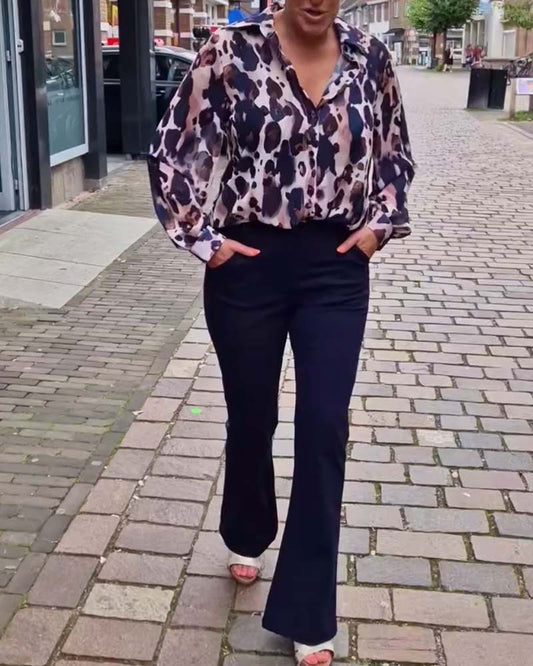 Fasjonabel langermet skjorte med leopardmønster