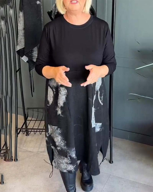 Dames rundhals Langermet Patchwork Design Uformell topp